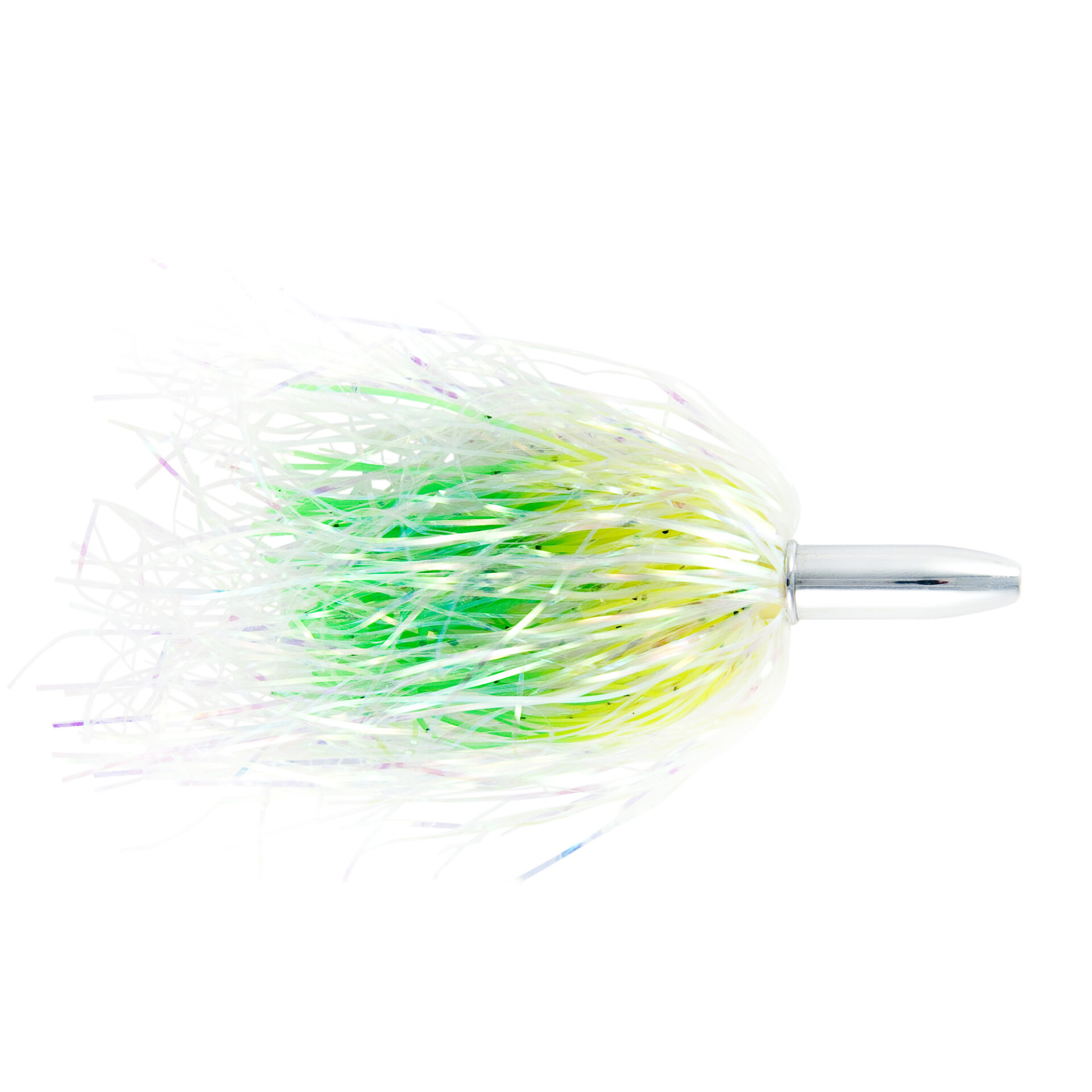 Billy Baits, Mini Turbo Slammer Lure, Pearl/Chartreuse/Green Firetip, Concave Head, 5.5 in / 14 cm