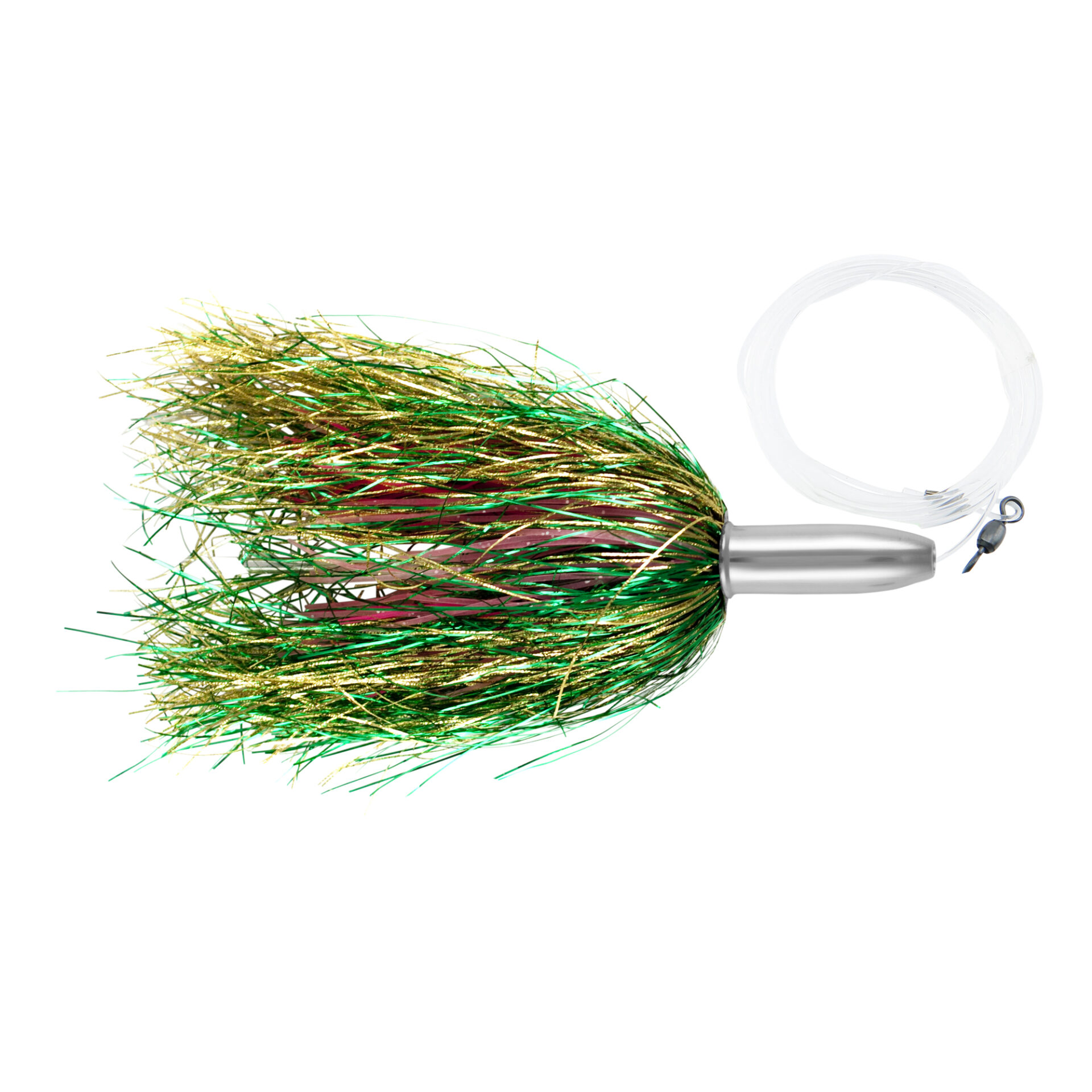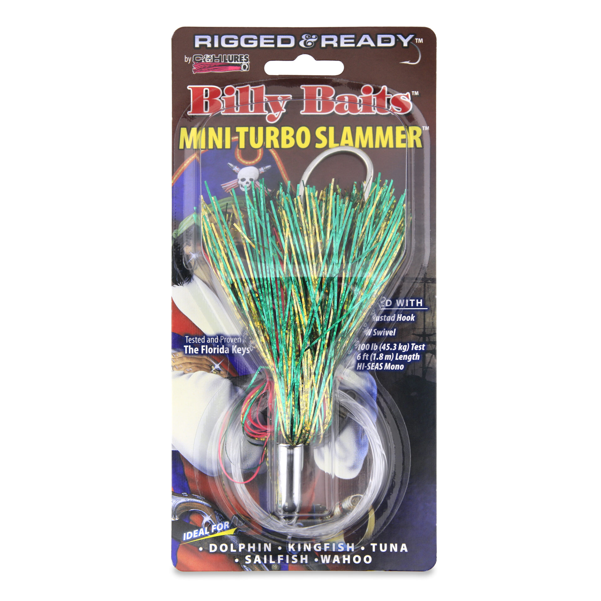 Billy Baits, Mini Turbo Slammer Rigged & Ready, Green/Gold/Pink, Concave Head, 7/0 Mustad Hook, AFW Swivel, 100 lb / 45.3 kg Grand Slam Mono Line, 6 ft / 1.8 m