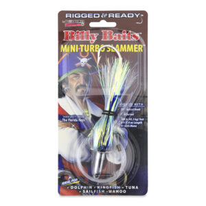 Billy Baits, Mini Turbo Slammer Rigged & Ready, Pearl/Blue, Concave Head, 7/0 Mustad Hook, AFW Swivel, 100 lb / 45.3 kg Grand Slam Mono Line, 6 ft / 1.8 m