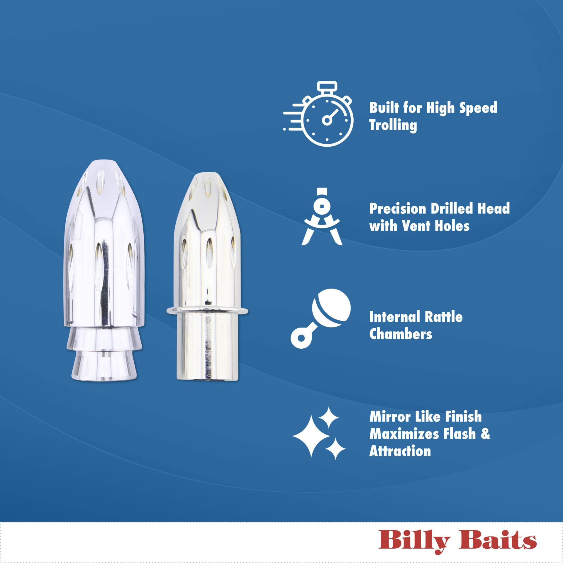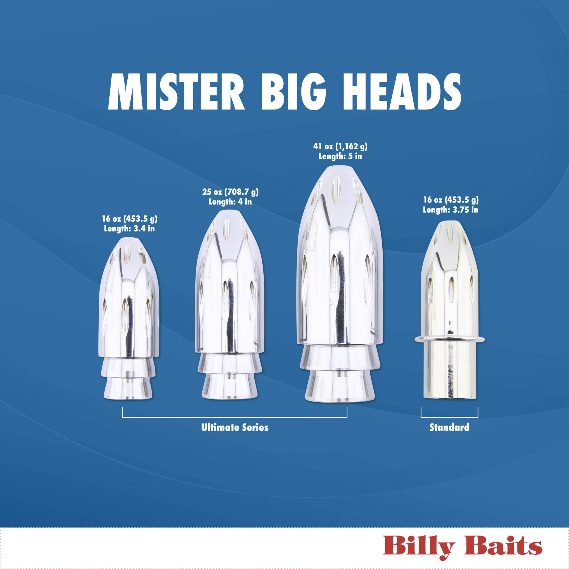 Billy Baits, Mister Big Head, XXL 41 oz / 1162.3 g, Ultimate Series, Tie on Skirt Version, Chrome Plated, Unskirted