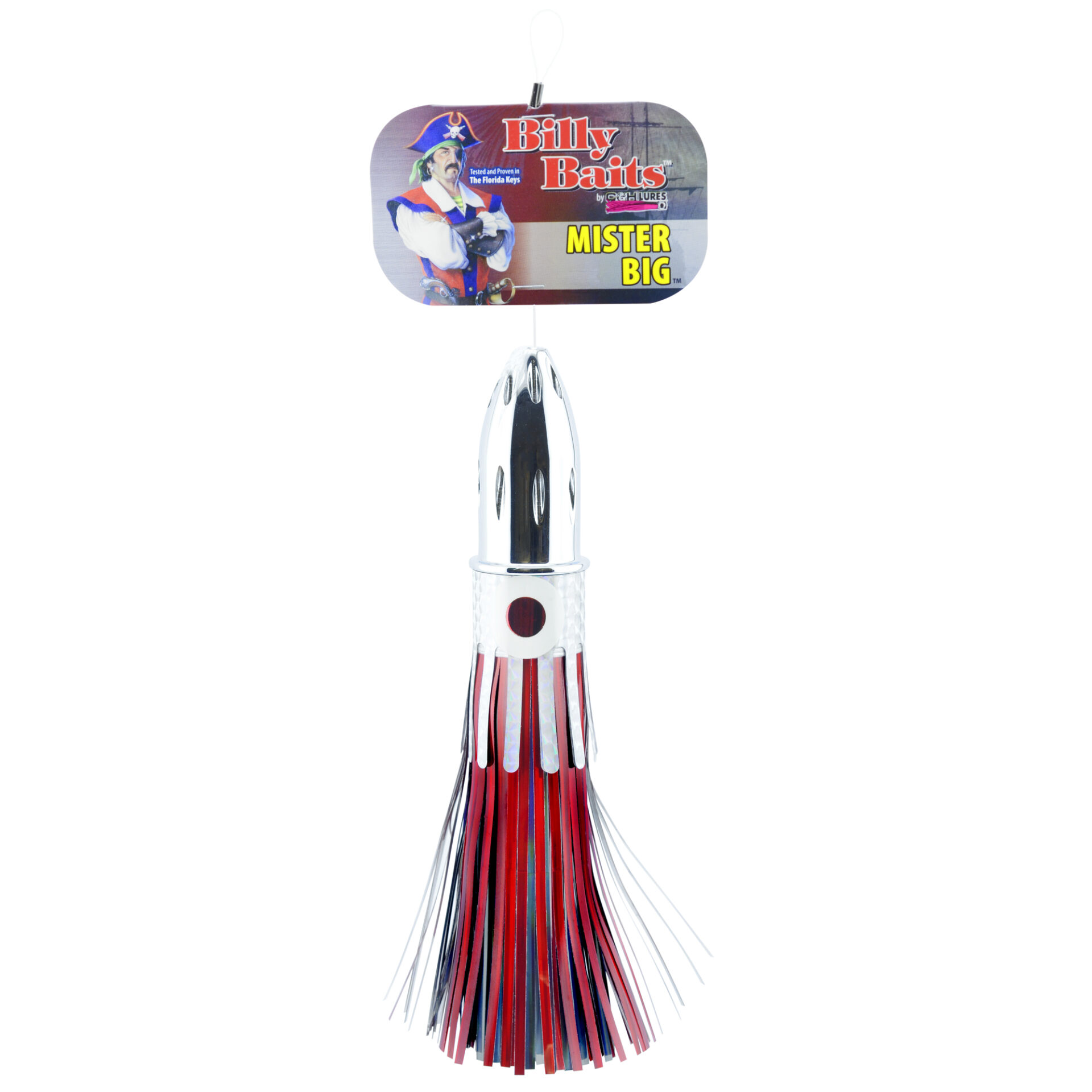 Billy Baits, Mister Big Lure, Black/Red Mylar Skirt, 16 oz / 453 g Head, 9 in / 22.8 cm