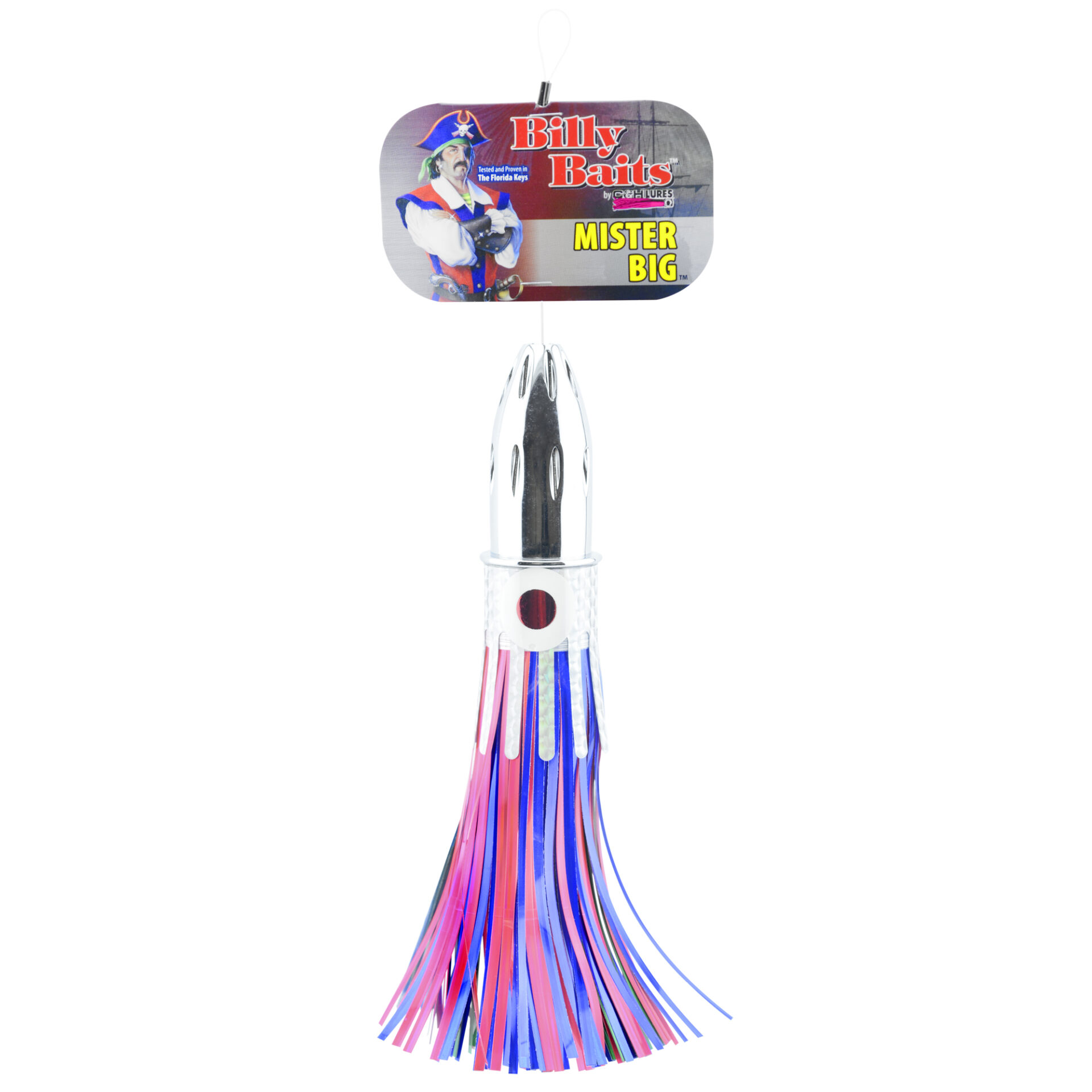 Billy Baits, Mister Big Lure, Blue/Chartreuse/Pink Mylar Skirt, 16 oz / 453 g Head, 9 in / 22.8 cm