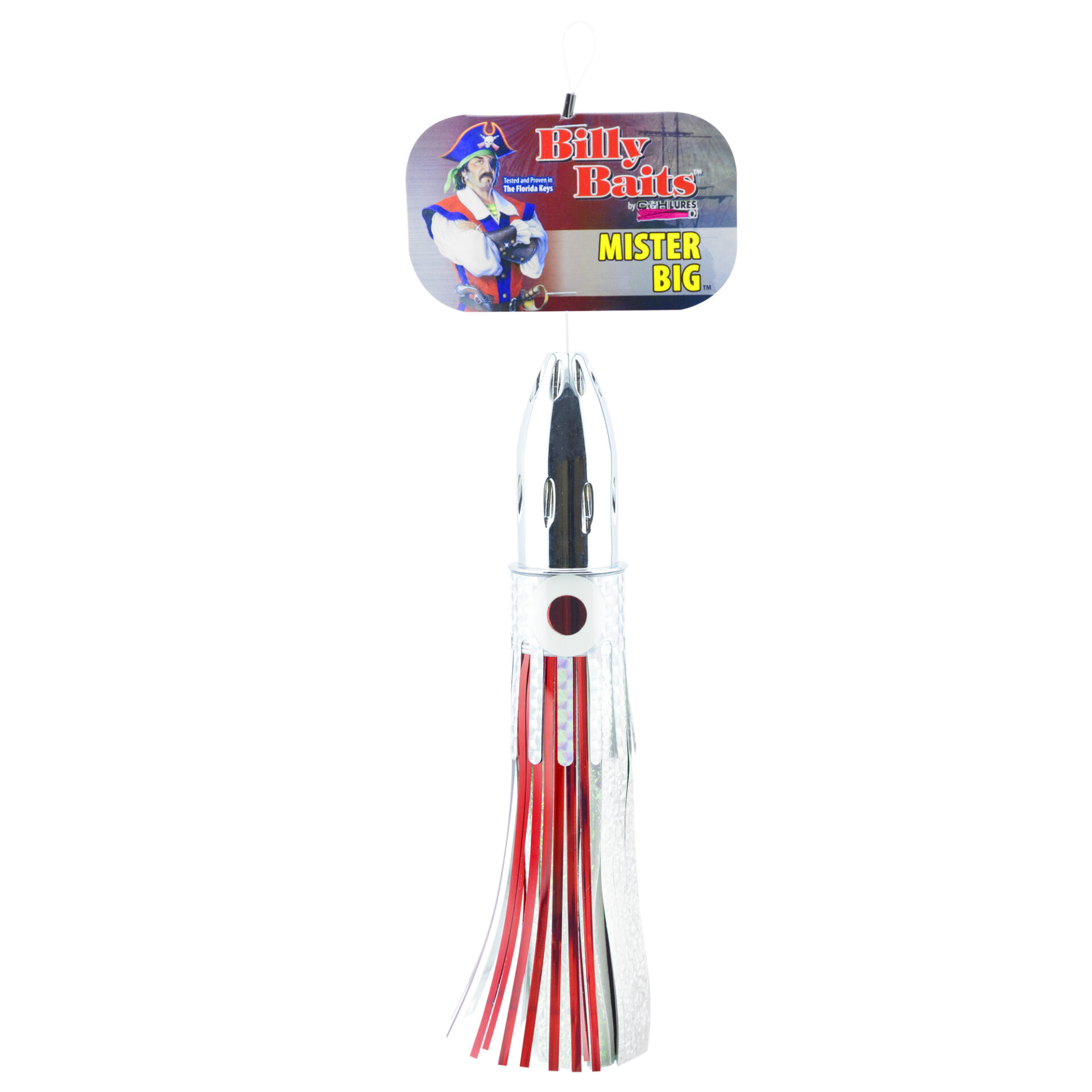 Billy Baits, Mister Big Lure, Red/White Mylar Skirt, 16 oz / 453 g Head, 9 in / 22.8 cm