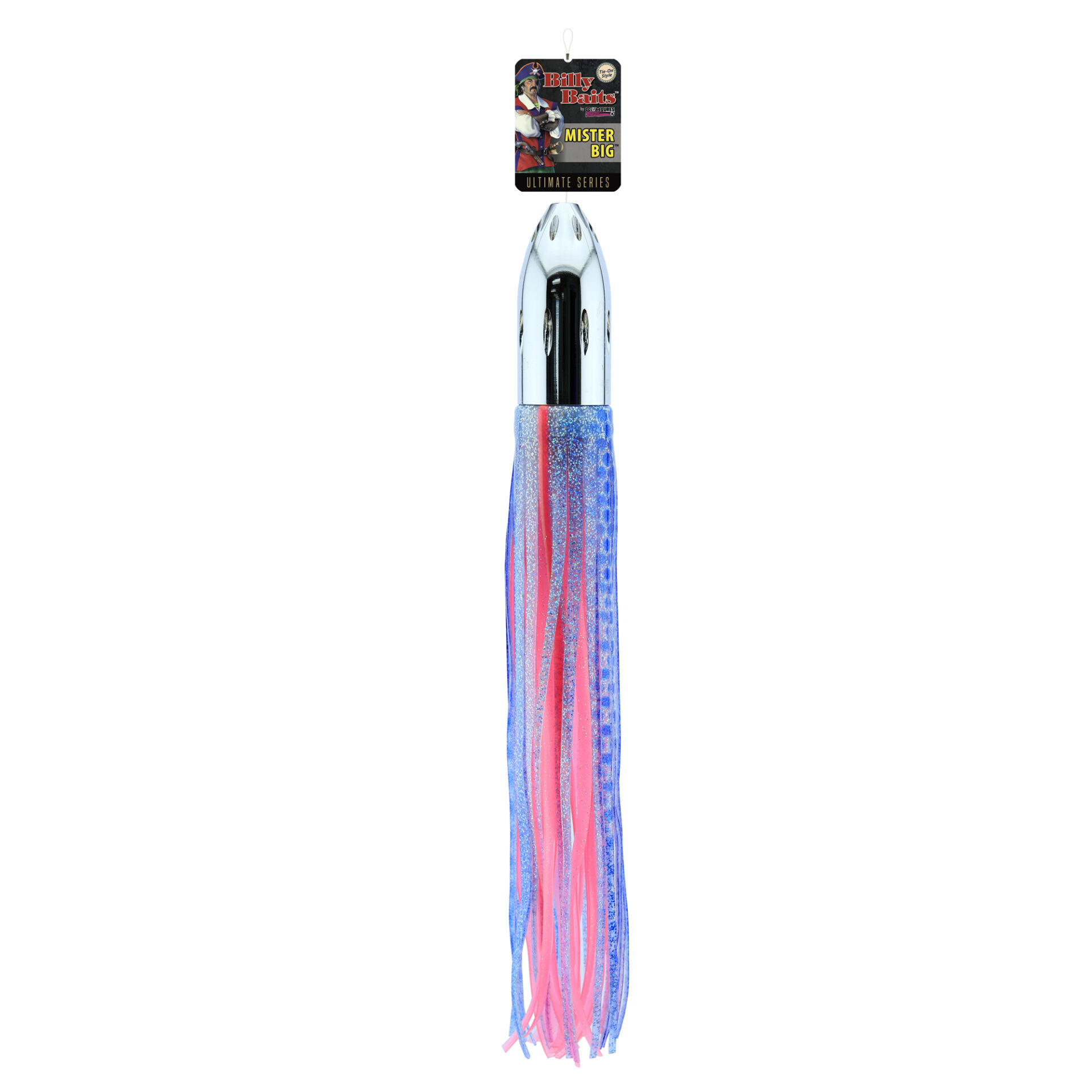 Billy Baits, Mister Big Lure, Ultimate Series, Tie on Skirt Version, Blue Dot 2 Red Veins/Pink PVC Skirt, XL, 16 oz / 454 g Head, 16 in / 40.6 cm