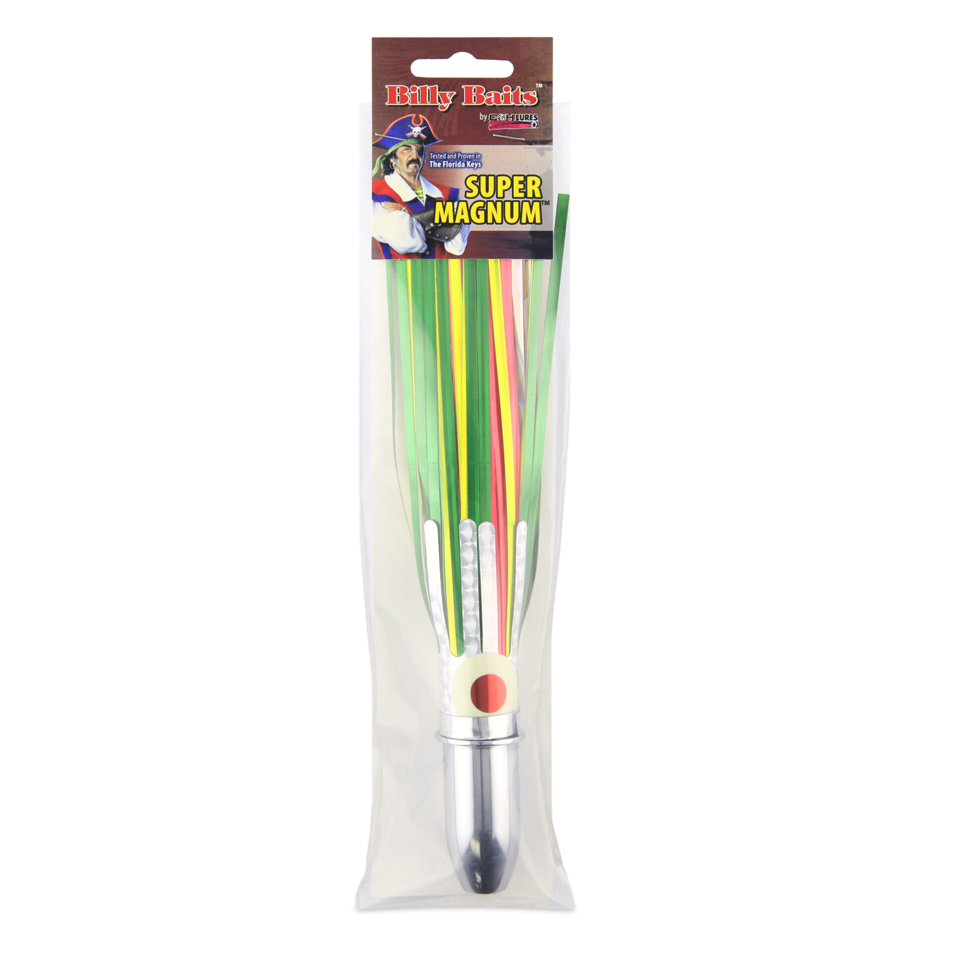 Billy Baits, Super Magnum Lure, Green/Chartreuse/Pink Eye-Skirt, 6 oz / 170 g Head, 8 in / 20.3 cm