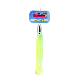 C&H, Jet Head Lure, Green/Yellow Skirt, 5 oz / 141 g Chrome Head, 10.5 in / 26.6 cm