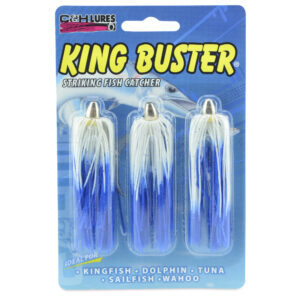 C&H, King Buster Lure, Blue/White Glow Skirt, 1/8 oz / 3.5 g Head, 2.5 in / 6.35 cm, 3 pc