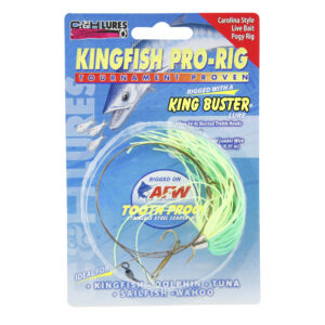 C&H, King Buster Pro-Rig, 1/8 oz / 3.5 g Head, Fluorescent Green/Chartreuse Skirt, Two #4 4x Treble Hooks, AFW Swivel, AFW Tooth Proof Camo Brown Wire, 3 ft / 0.91 m