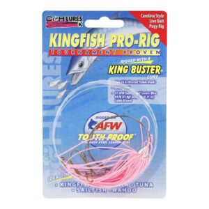 C&H, King Buster Pro-Rig, 1/8 oz / 3.5 g Head, Pink/Glow Skirt, Two #4 4x Treble Hooks, AFW Swivel, AFW Tooth Proof Camo Brown Wire, 3 ft / 0.91 m
