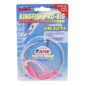 C&H, King Buster Pro-Rig, 1/8 oz / 3.5 g Head, Pink/Pink Silver Fleck Skirt, Two #4 4x Treble Hooks, AFW Swivel, AFW Tooth Proof Camo Brown Wire, 3 ft / 0.91 m