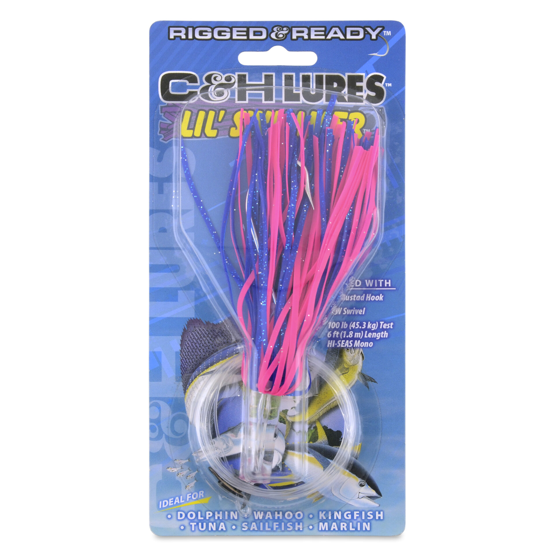 C&H, Lil Swimmer Rig, Blue/Pink Pearl Skirt, 7/0 Mustad Hook, AFW Swivel, 100 lb / 45.3 kg Grand Slam Mono Line, 6 ft / 1.8 m