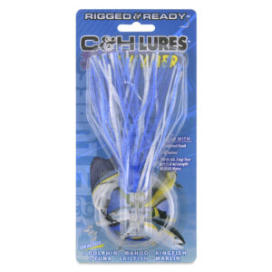 C&H, Lil Swimmer Rig, White/Blue Skirt, 7/0 Mustad Hook, AFW Swivel, 100 lb / 45.3 kg Grand Slam Mono Line, 6 ft / 1.8 m