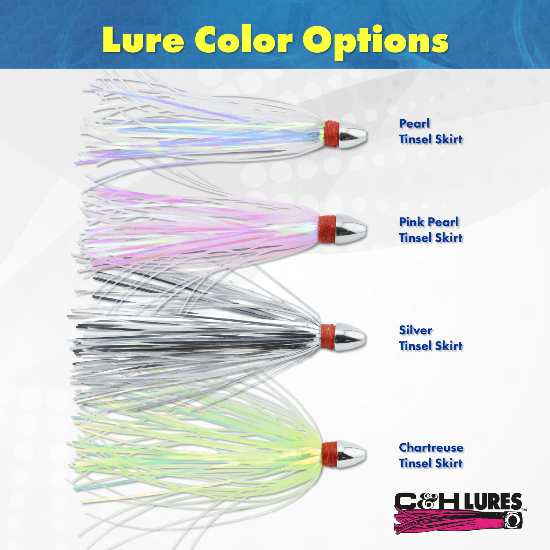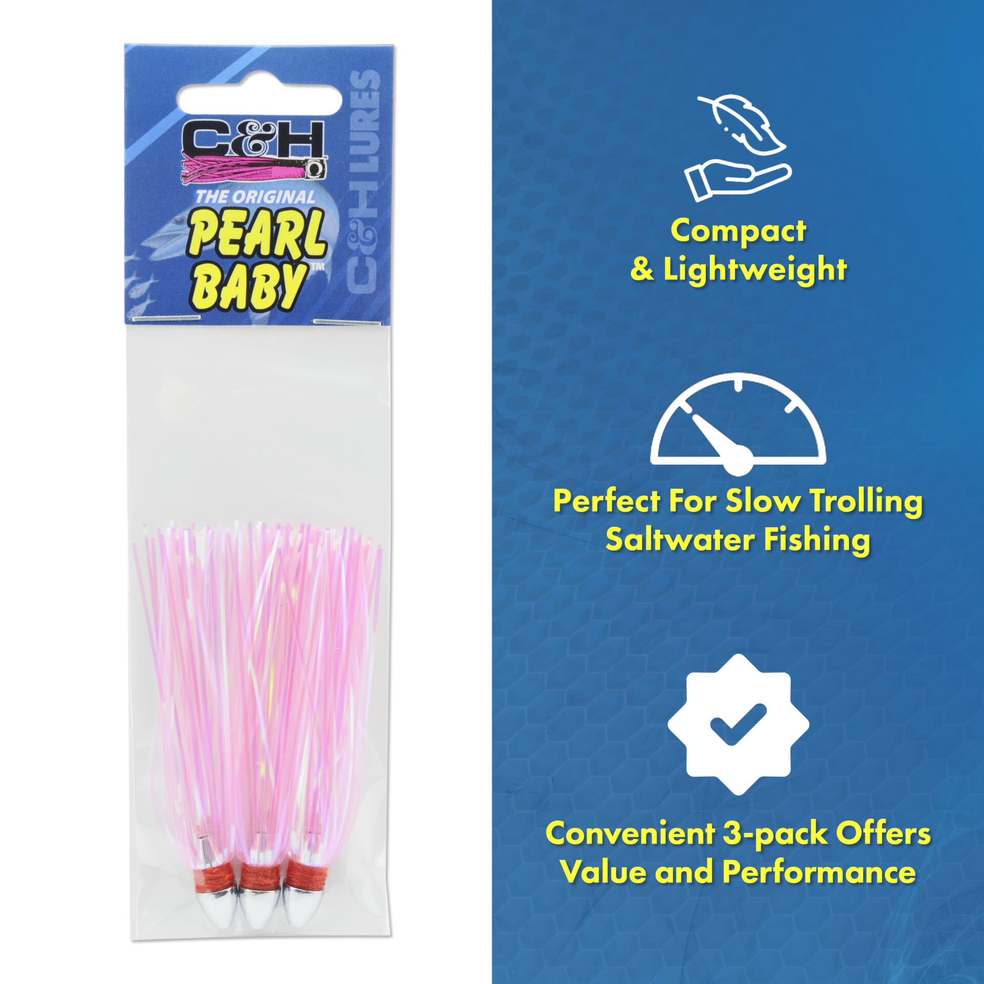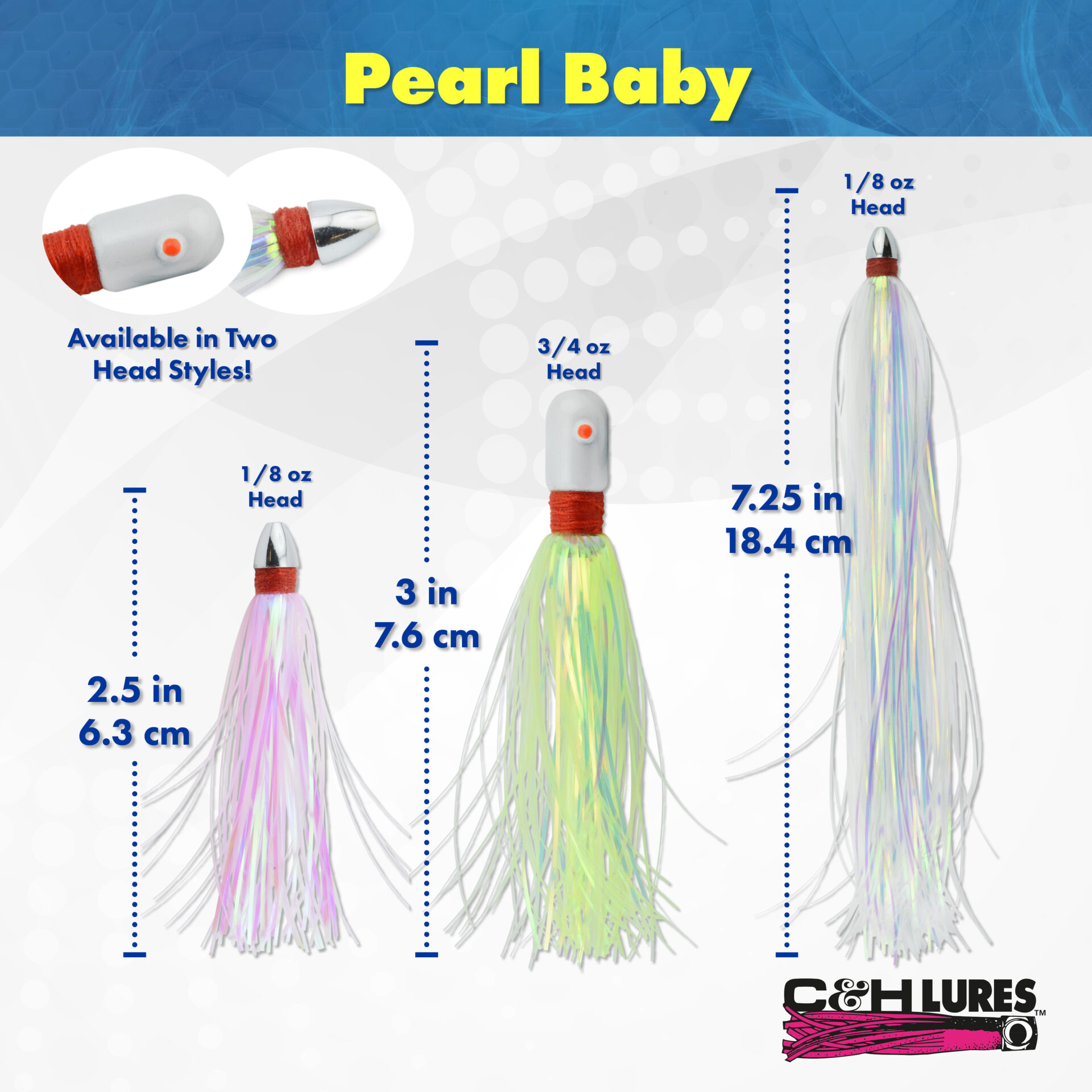 C&H, Pearl Baby Lure, Silver Tinsel Skirt, 1/8 oz / 3.54 g Head, 2.5 in / 6.35 cm, 3 pc