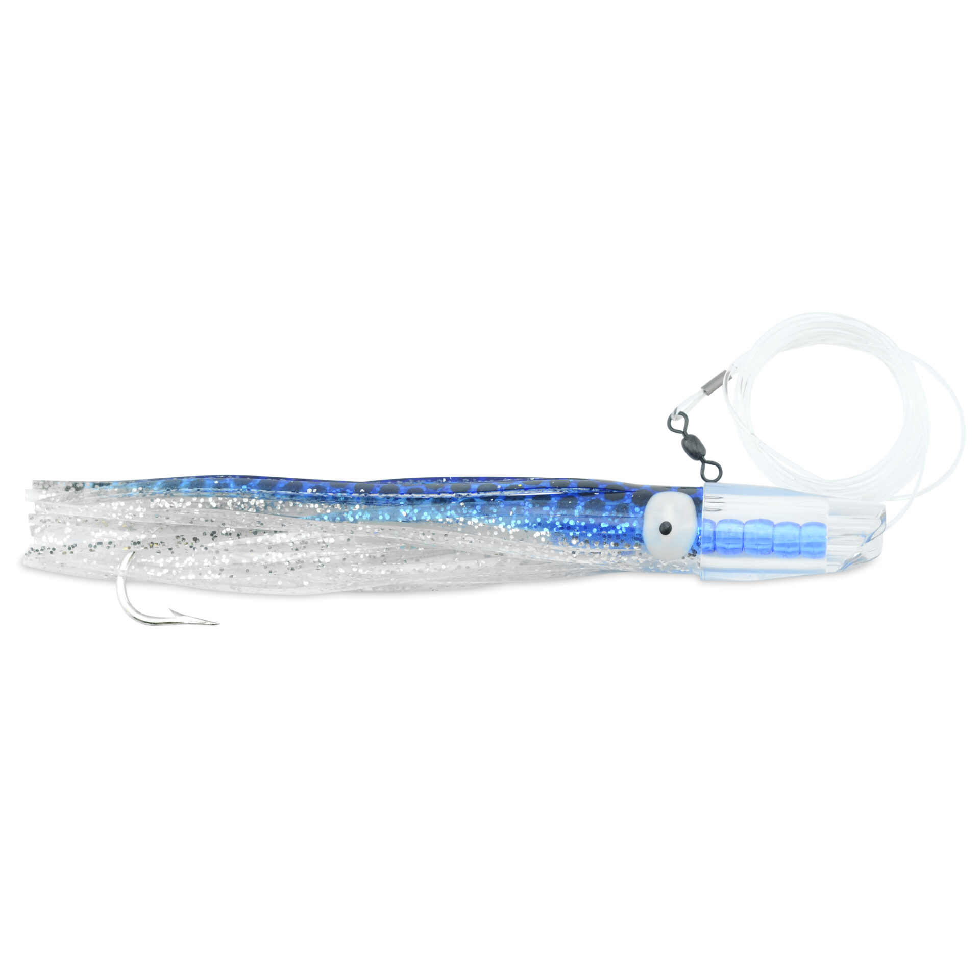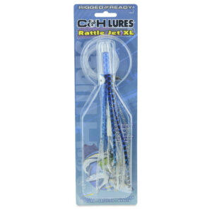C&H, Rattle Jet XL Rigged & Ready, Blue/Silver/White Skirt, 8/0 Mustad Hook, AFW Swivel, 130 lb / 58.9 kg Grand Slam Mono Line, 6 ft / 1.8 m