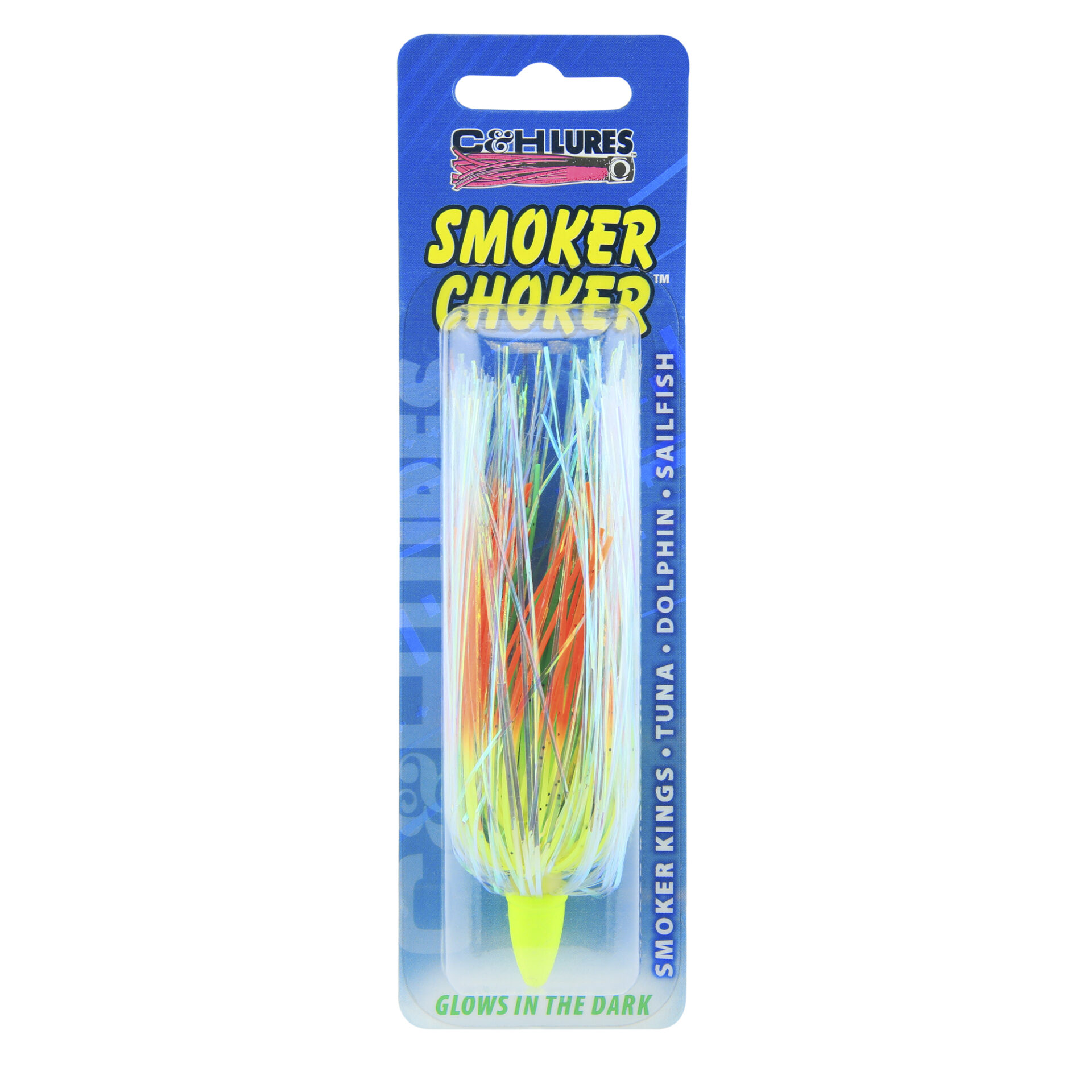 C&H, Smoker Choker Lure, Chartreuse//Orang/Pearl Skirt, Luminescent Head, 4 in / 10 cmAvailability: In stock