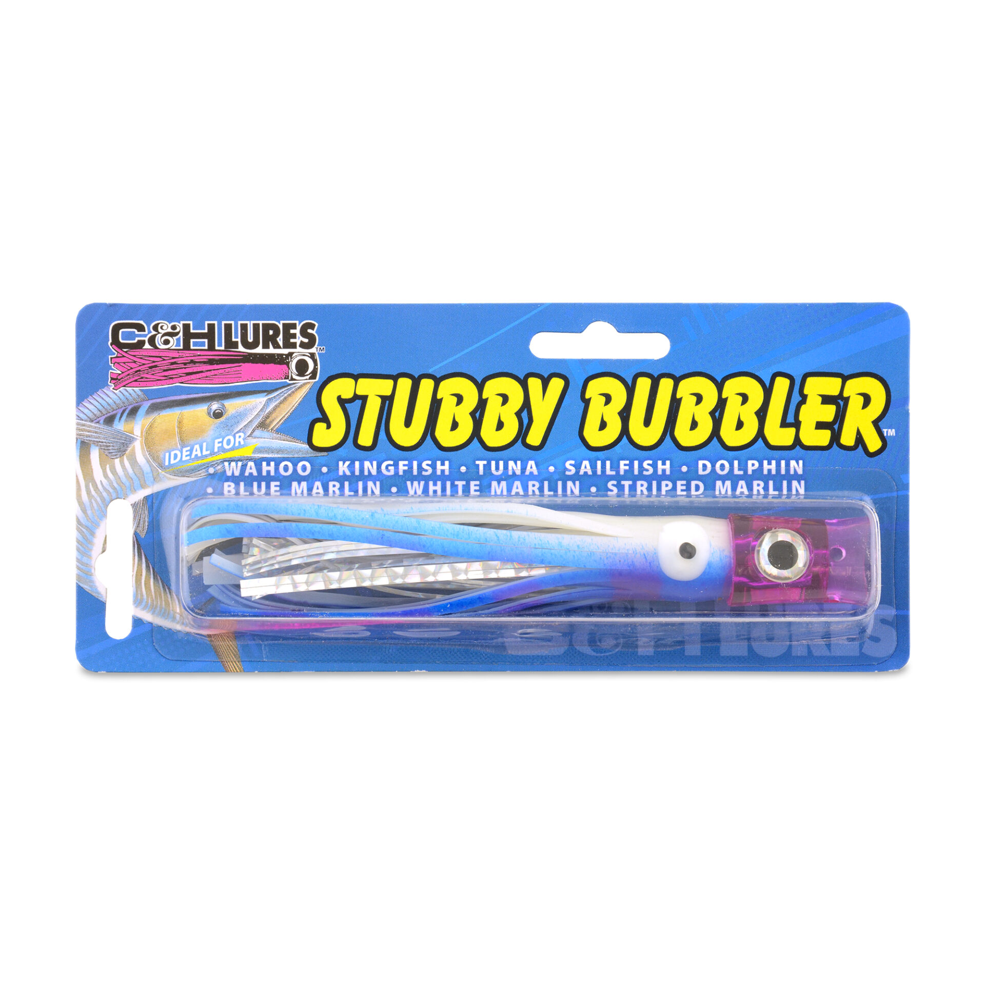 C&H, Stubby Bubbler Lure, Purple/Pearl Mylar Skirt, 5.5 in / 13.9 cm