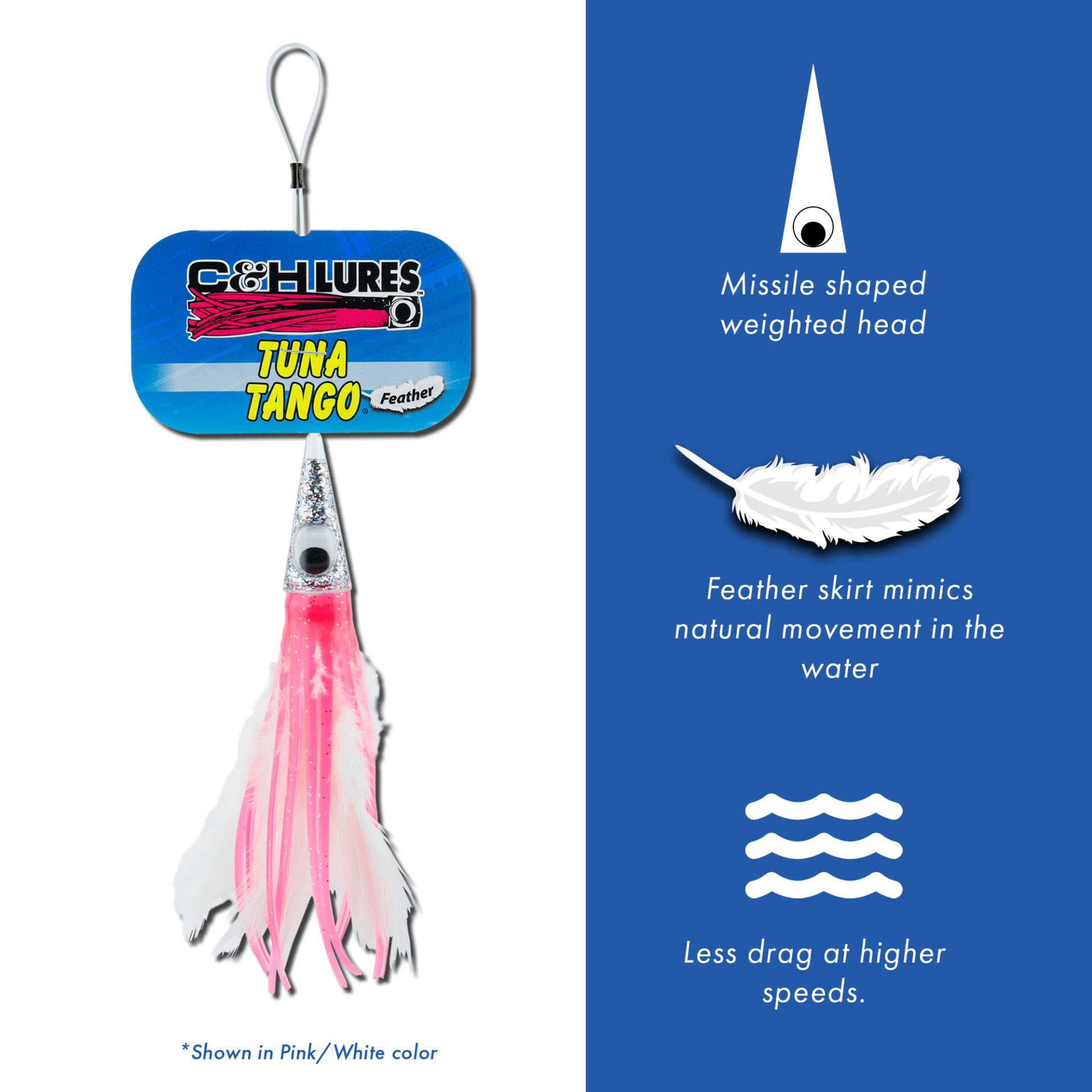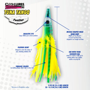 C&H, Tuna Tango Feather Lure, Black Foil/Red Feather Skirt, 5.25 in / 13.3 cm