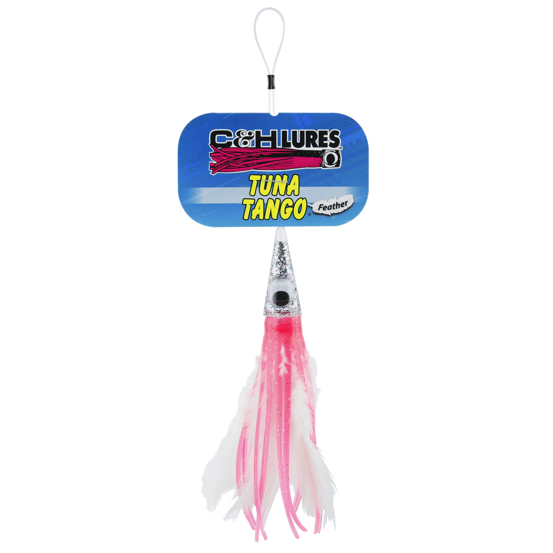 C&H, Tuna Tango Feather Lure, Pink/White Feather Skirt, 5.25 in / 13.3 cm
