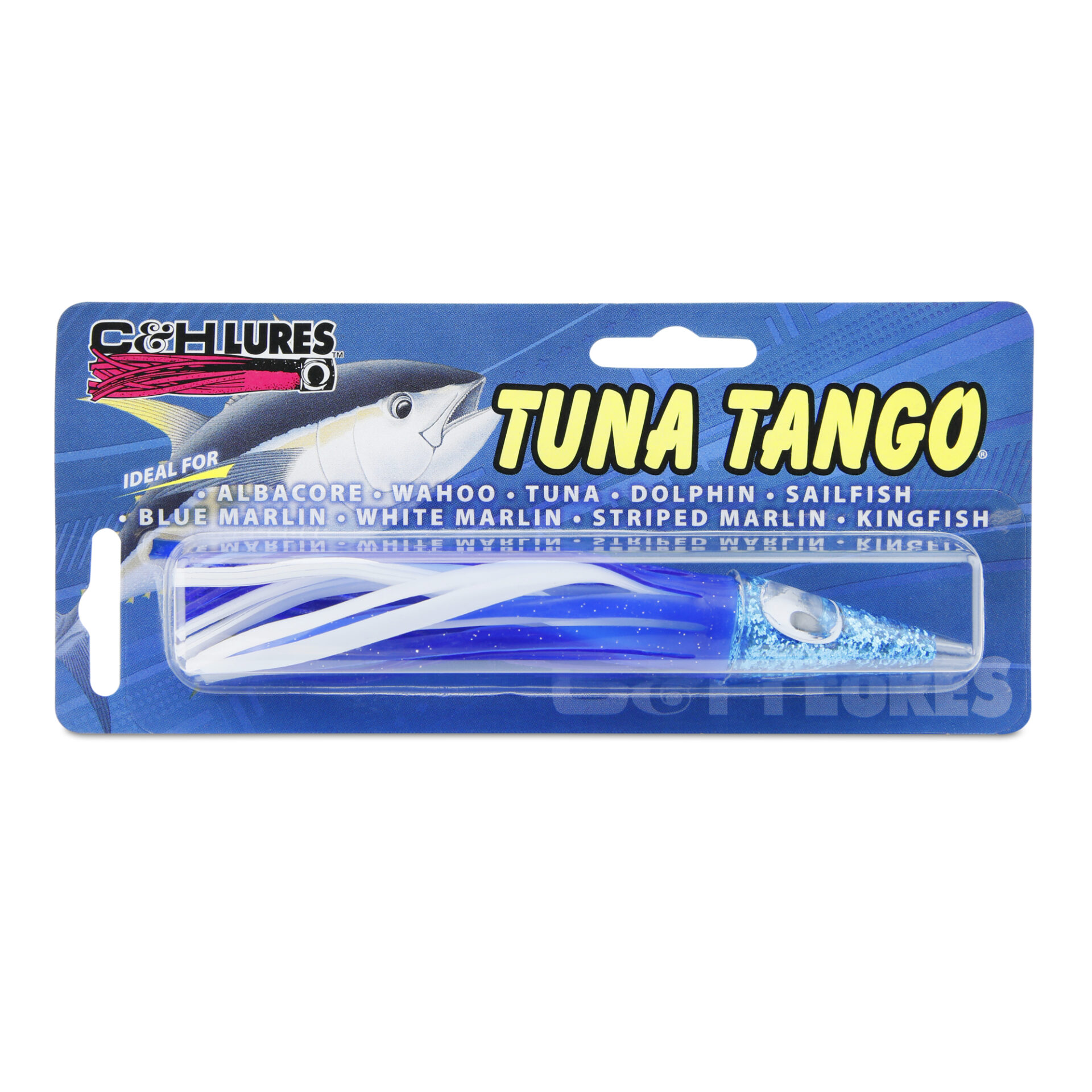 C&H, Tuna Tango Lure, Blue/White Skirt, 1.75 oz / 49.6 g Head, 5.75 in / 14.6 cm