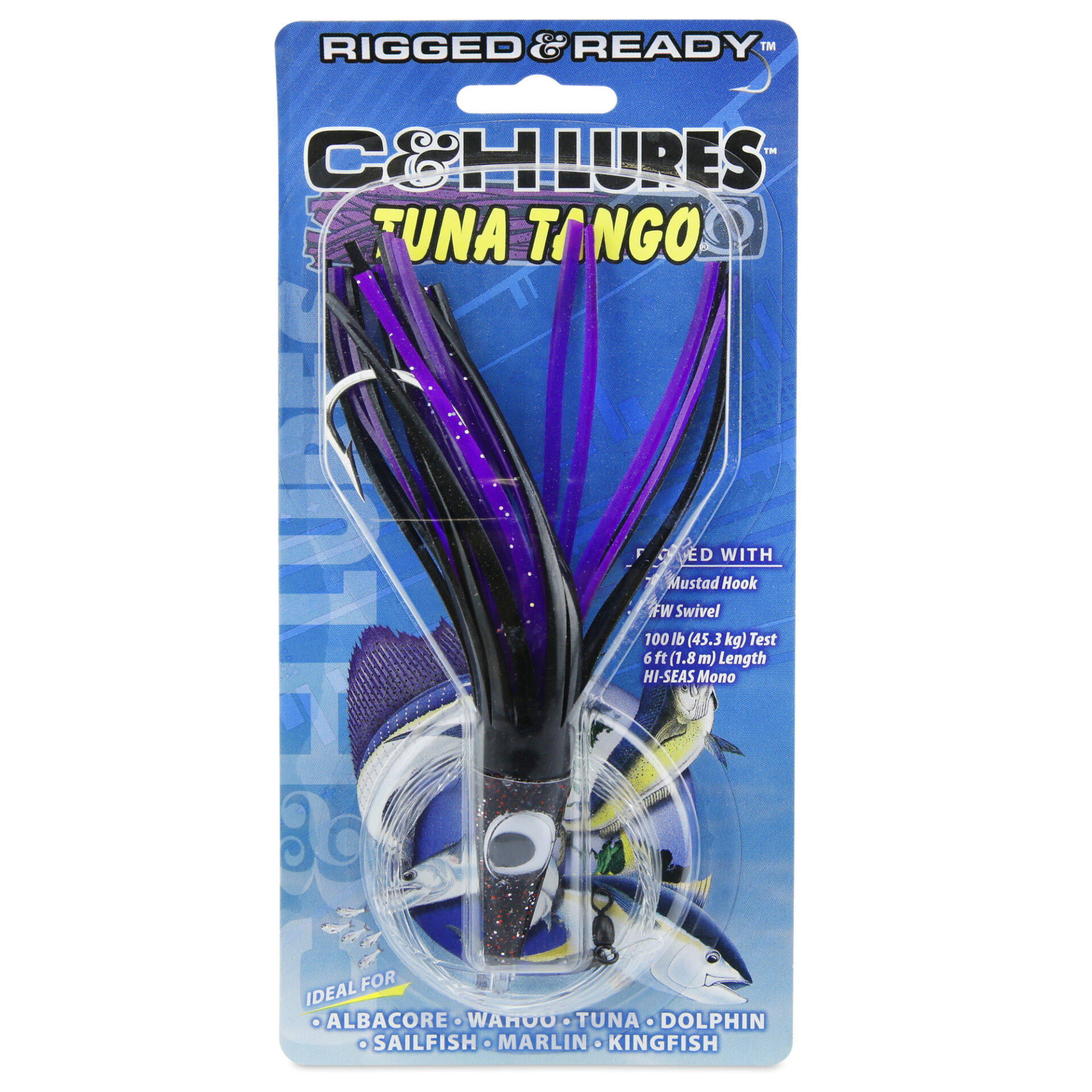 C&H, Tuna Tango Rigged & Ready, Black/Purple Skirt, 7/0 Mustad Hook, AFW Swivel, 100 lb / 45.3 kg Grand Slam Mono Line, 6 ft / 1.8 m