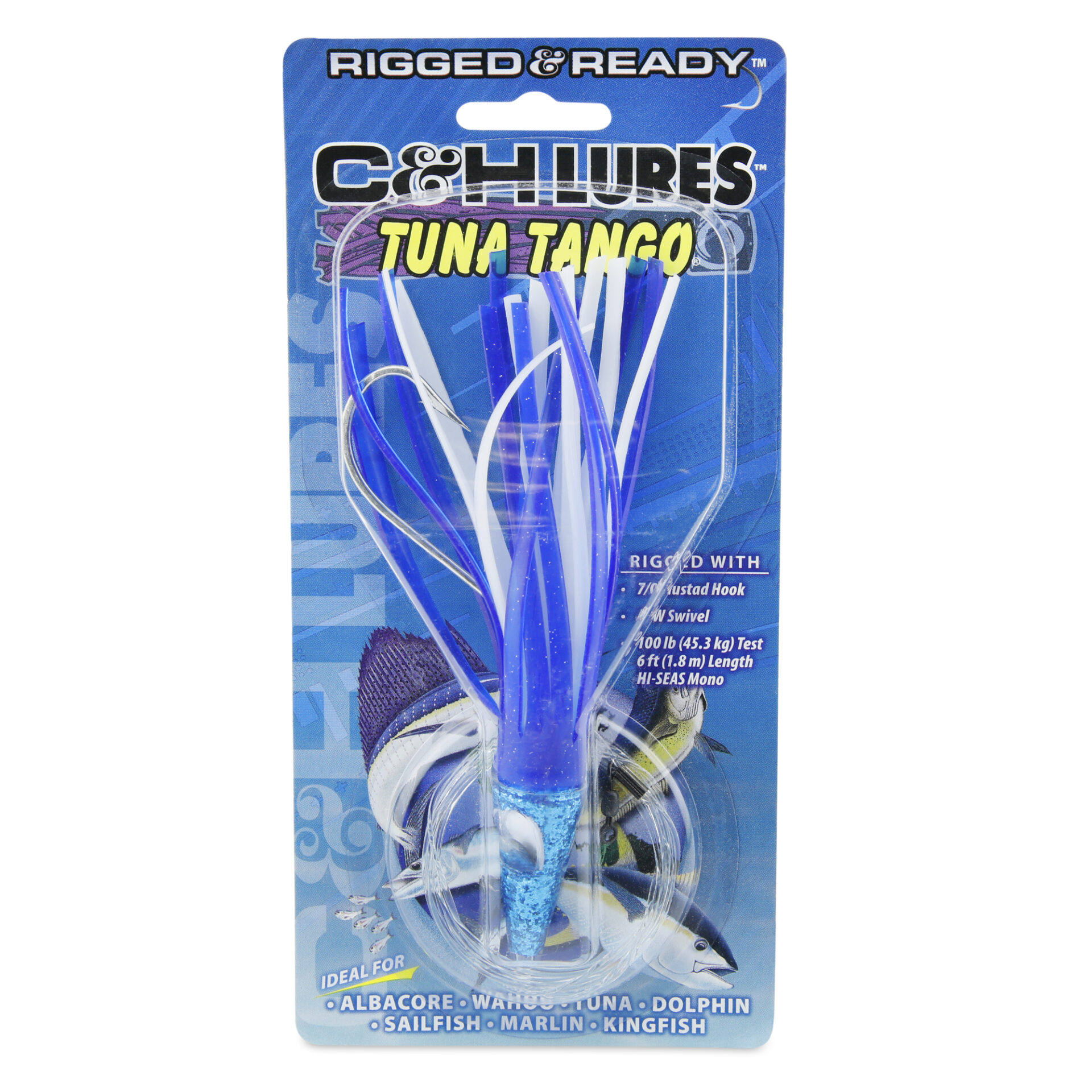 C&H, Tuna Tango Rigged & Ready, Blue/White Skirt, 7/0 Mustad Hook, AFW Swivel, 100 lb / 45.3 kg Grand Slam Mono Line, 6 ft / 1.8 m