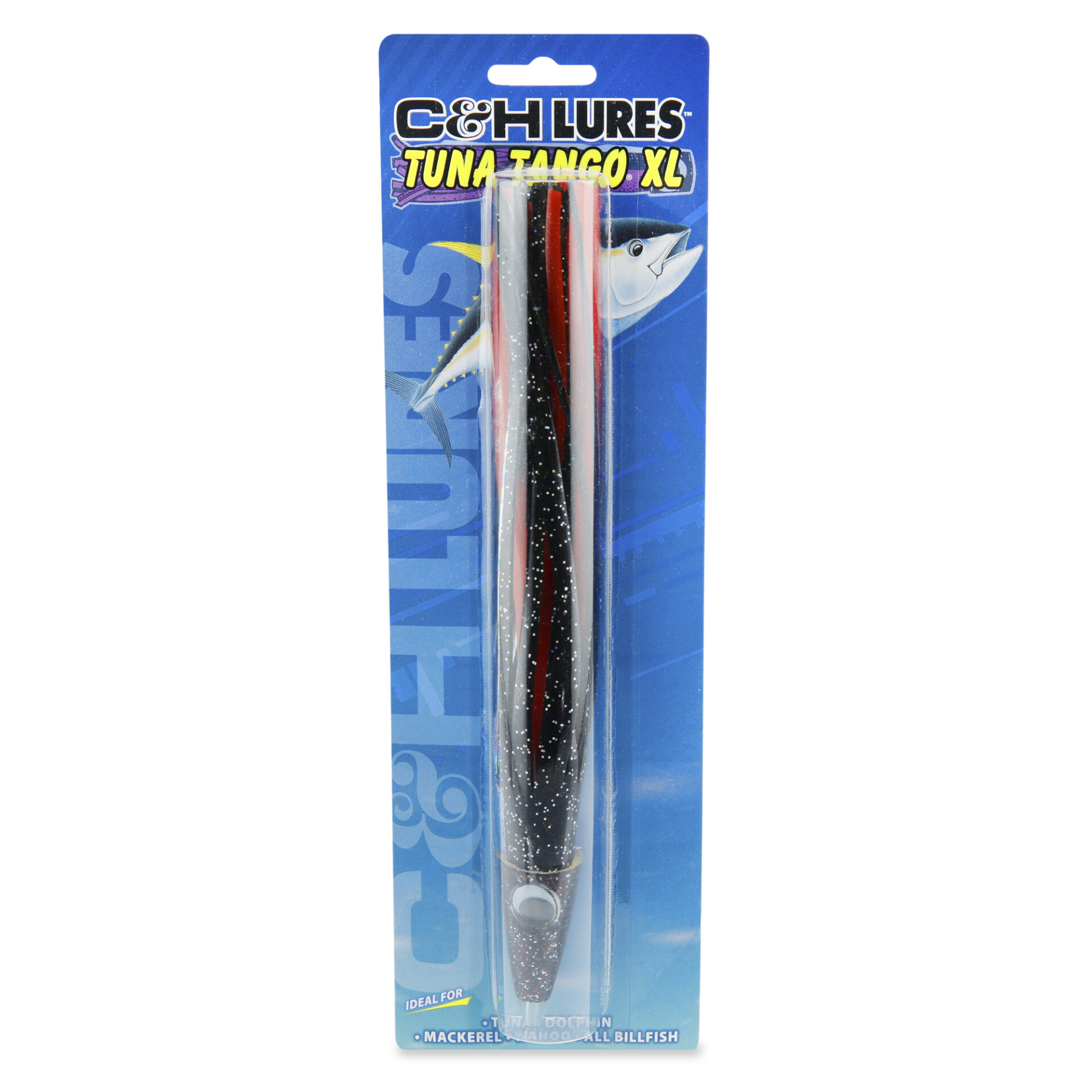 C&H, Tuna Tango XL Lure, Black-Foil/Red Skirt, 2.5 oz / 70.8 g Head, 8.5 in / 21.5 cm
