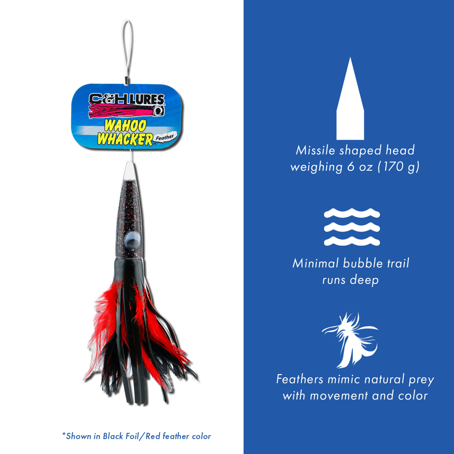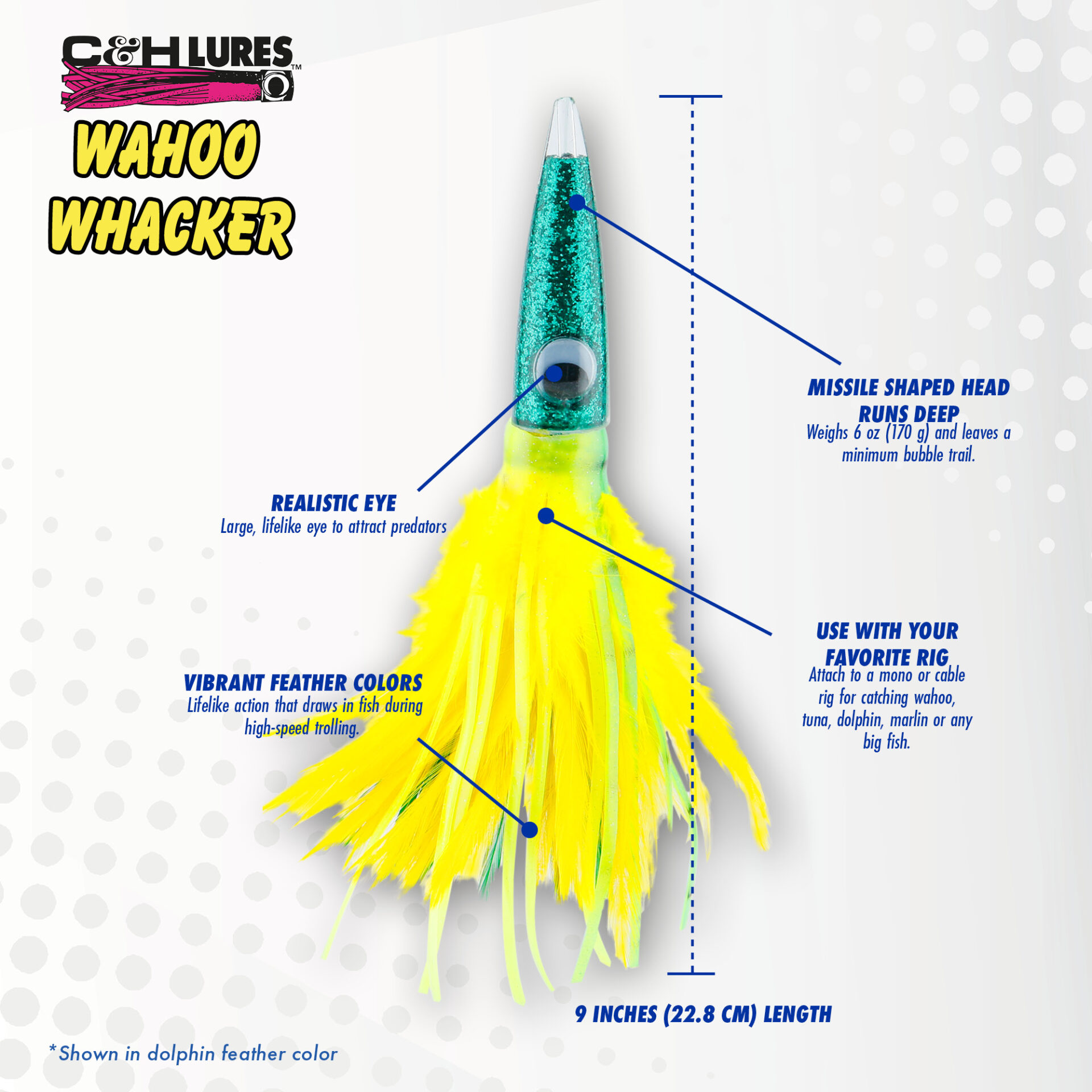 C&H, Wahoo Whacker Feather Lure, Dolphin Feather Skirt, 9 in / 22.8 cm
