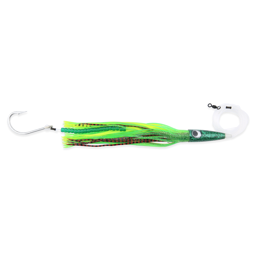 C&H, Wahoo Whacker Rigged & Ready, Grn/Chart/Red Skirt, 6 oz / 170 g 12.5 in / 31.75 cm, 10/0 Mustad 7731-DT Hook, AFW Swivel, 200 lb / 90.6 kg Grand Slam Mono, 12 ft / 3.6 m