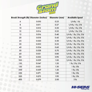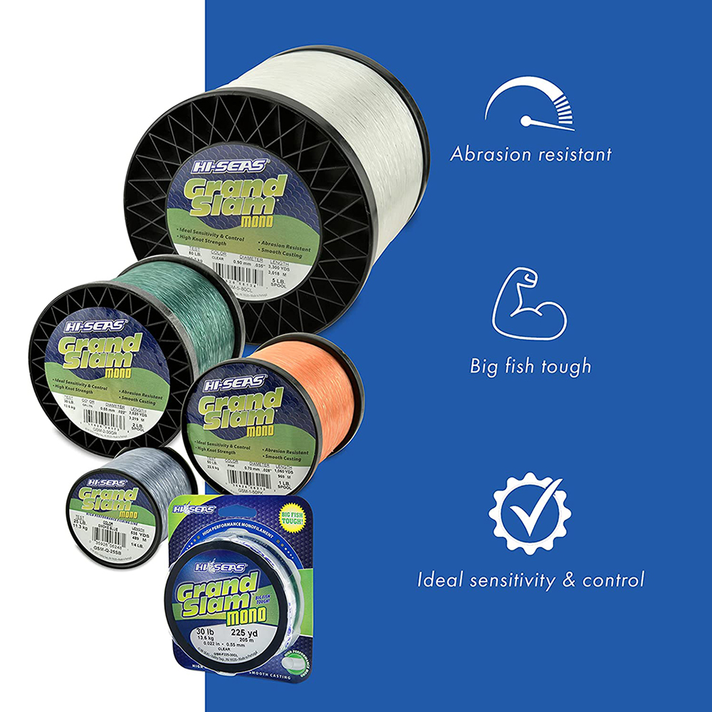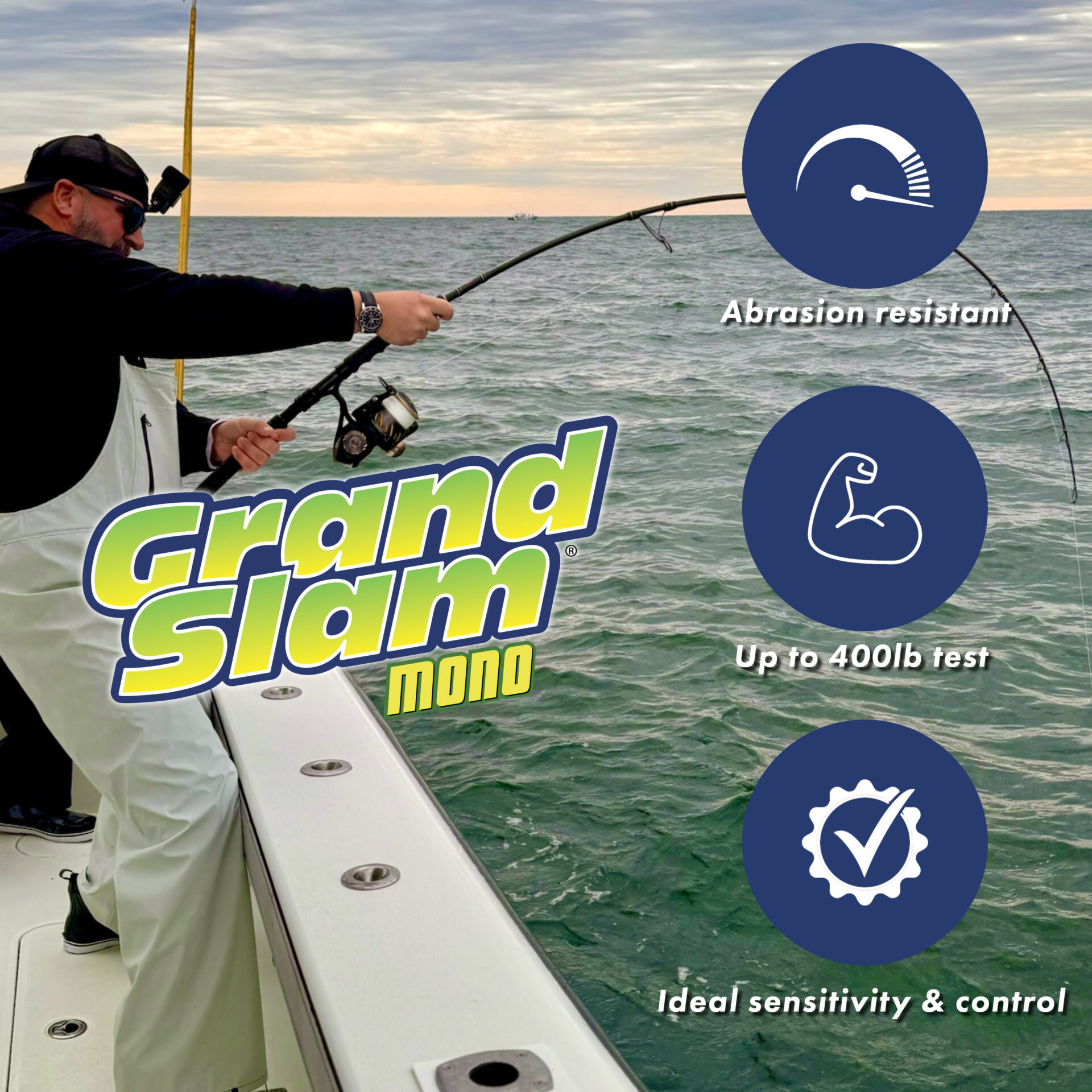 Grand Slam Monofilament Line, 130 lb / 58.9 kg test, .047 in / 1.20 mm dia, Fluorescent Yellow, 1850 yd / 1692 m, 5 lb / 2.27 kg Spool