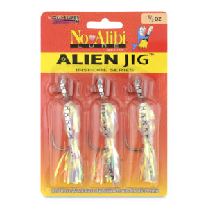 No Alibi, Alien Jig Inshore Series, Pearl Skirt, 1/2 oz / 14.1 g Red Head, 5/0 Hook, 3 pc