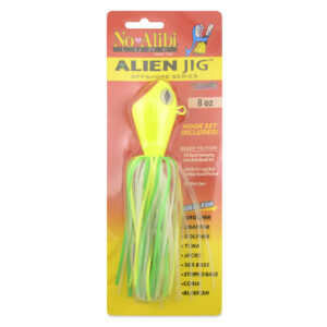 No Alibi, Alien Jig Offshore Series, Glow Green/Chartreuse Skirt, 8 oz / 226 g Green Head, 7/0 Hooks (2)