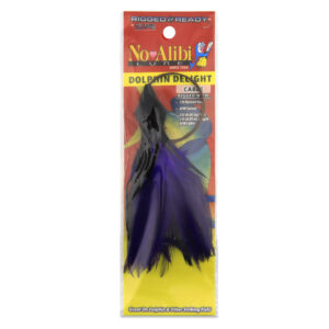 No Alibi, Dolphin Delight Rigged & Ready, Black/Purple Skirt, 1.5 oz / 42.5 g Lead Head, 6 in / 15.2 cm, 7/0 Mustad Hook, AFW Swivel, 135 lb / 61 kg AFW Cable, 3 ft / 0.9 m