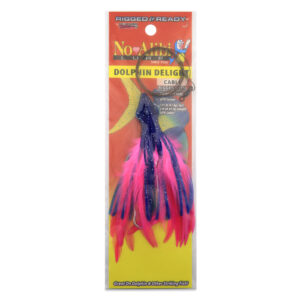 No Alibi, Dolphin Delight Rigged & Ready, Blue/Pink Skirt, 1/2 oz / 14.1 g Lead Head, 4.5 in / 11.4 cm, 7/0 Mustad Hook, AFW Swivel, 135 lb / 61 kg AFW Cable, 3 ft / 0.9 m
