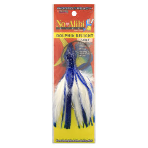 No Alibi, Dolphin Delight Rigged & Ready, Blue/White Skirt, 1.5 oz / 42.5 g Lead Head, 6 in / 15.2 cm, 7/0 Mustad Hook, AFW Swivel, 135 lb / 61 kg AFW Cable, 3 ft / 0.9 mNo Alibi, Dolphin Delight Rigged & Ready, Blue/White Skirt, 1.5 oz / 42.5 g Lead Head, 6 in / 15.2 cm, 7/0 Mustad Hook, AFW Swivel, 135 lb / 61 kg AFW Cable, 3 ft / 0.9 m