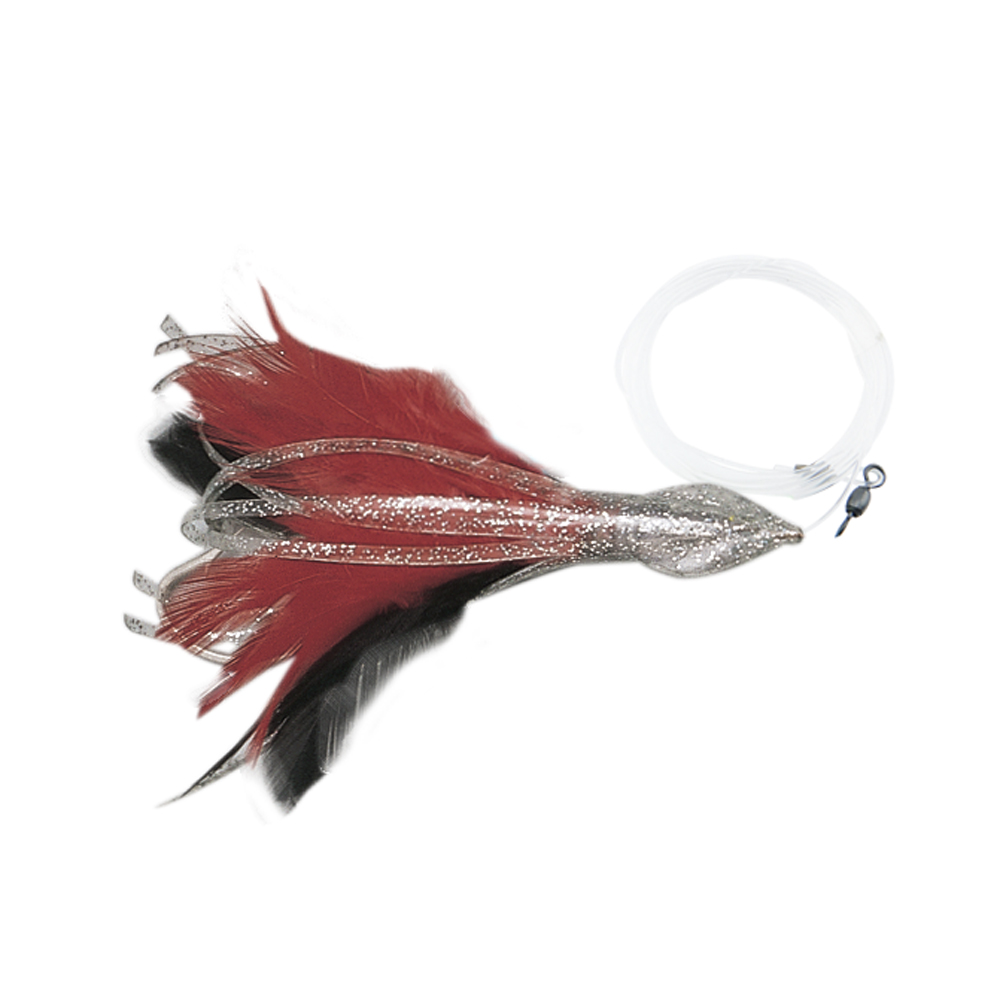 No Alibi, Dolphin Delight Rigged & Ready, Silver/Red Skirt, 1/2 oz / 14 g Head, 4.5 in / 11.4 cm, 7/0 Mustad Hook, AFW Swivel, 130 lb / 58.9 kg Grand Slam Mono, 6 ft / 1.8 m
