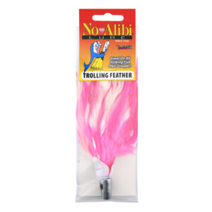 No Alibi, Trolling Feather Lure, White/Pink Skirt, 1 oz / 28.3 g Head