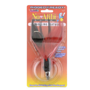 No Alibi,Trolling Feather Rigged & Ready, Black/Red Skirt, 1 oz / 28.3 g, 7/0 Mustad Hook, AFW Swivel, 100 lb / 45.3 kg Grand Slam Mono Line, 6 ft / 1.8 mNo Alibi,Trolling Feather Rigged & Ready, Black/Red Skirt, 1 oz / 28.3 g, 7/0 Mustad Hook, AFW Swivel, 100 lb / 45.3 kg Grand Slam Mono Line, 6 ft / 1.8 m
