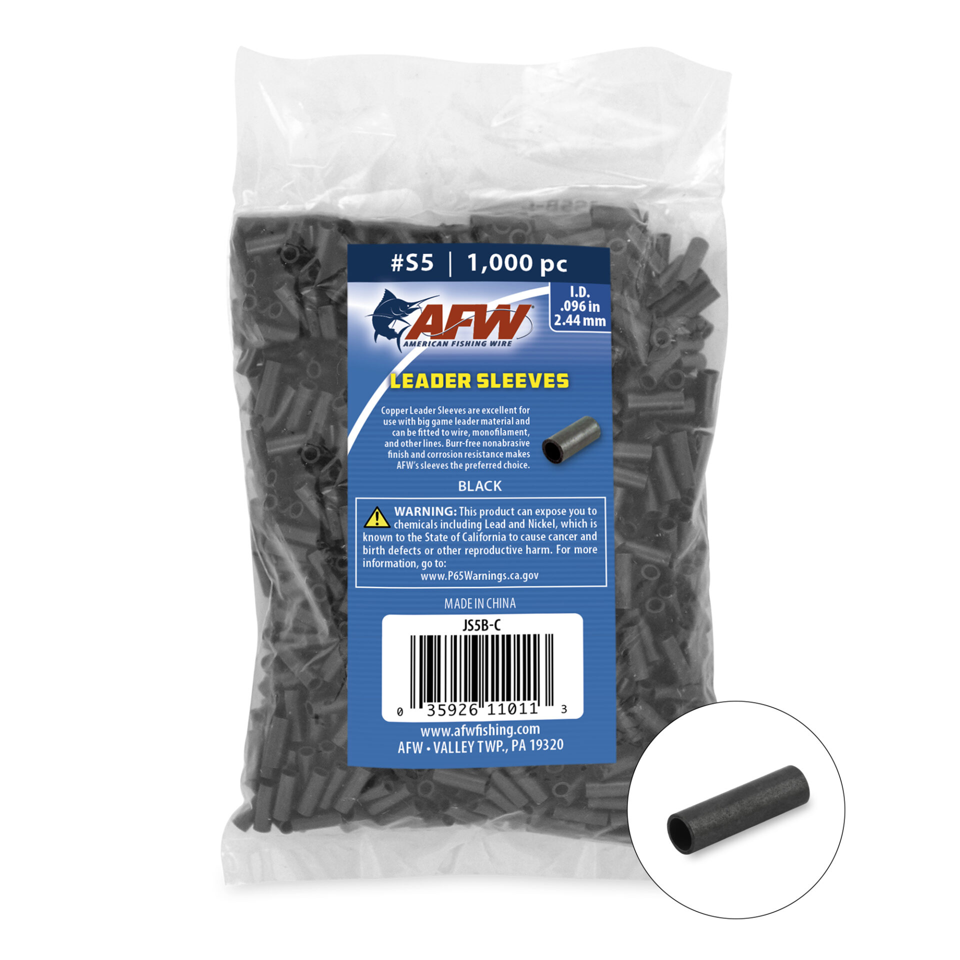 Single Barrel Sleeves, Size #S5, .096 in / 2.44 mm ID, .400 in / 1.15 mm length, Black, 1,000 pc