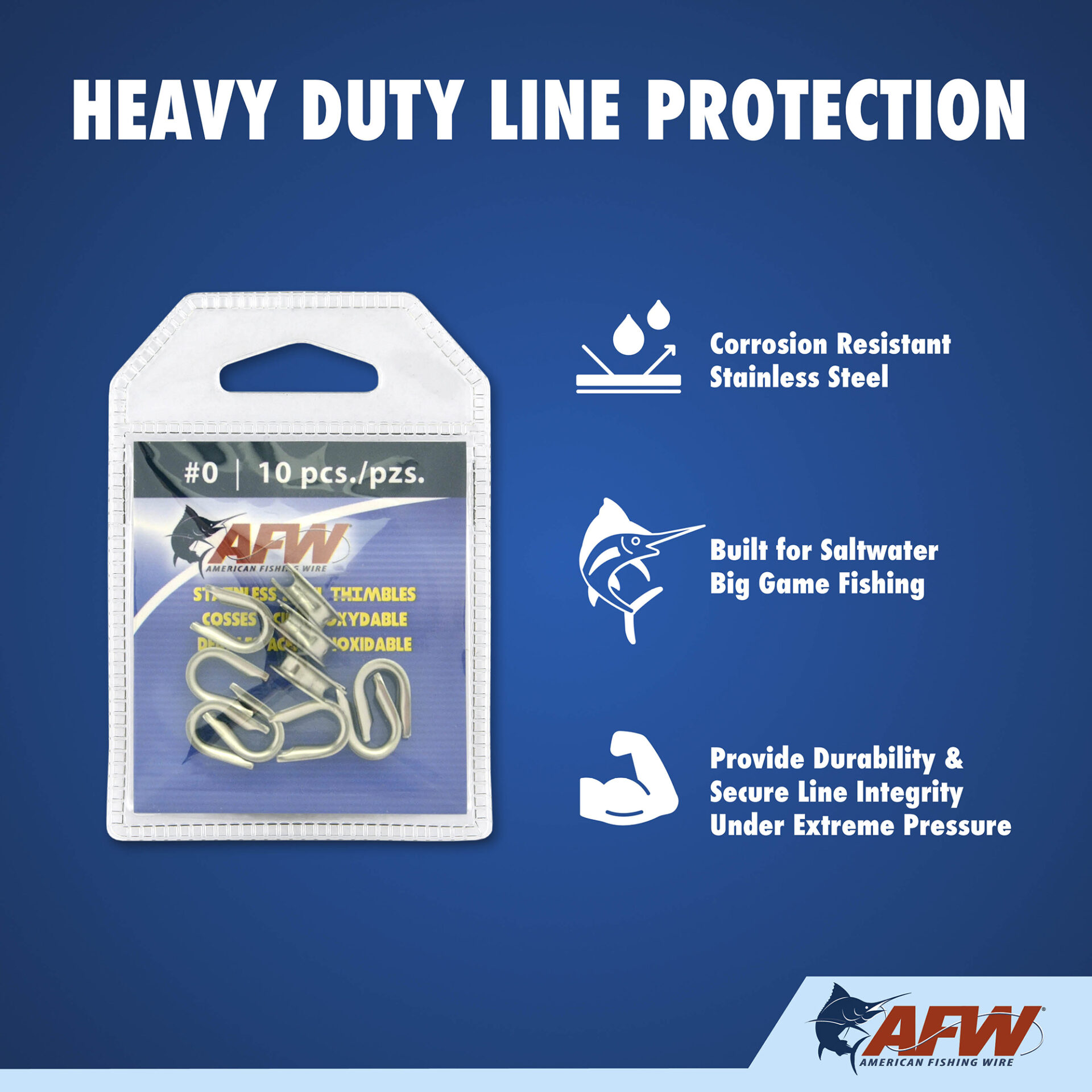 Thimbles are recommended to protect line and cable from wear on small and big game rigs.